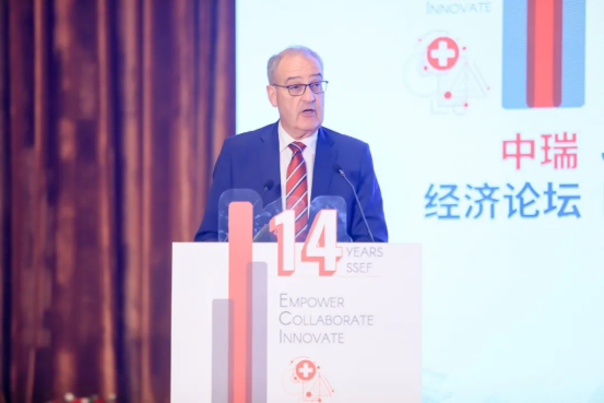 瑞士联邦委员兼经济、教育与研究部长居伊·帕姆兰阁下在主题演讲中高度赞赏中瑞两国不断发展的双边关系,强调了瑞士企业与中国市场的紧密联系。